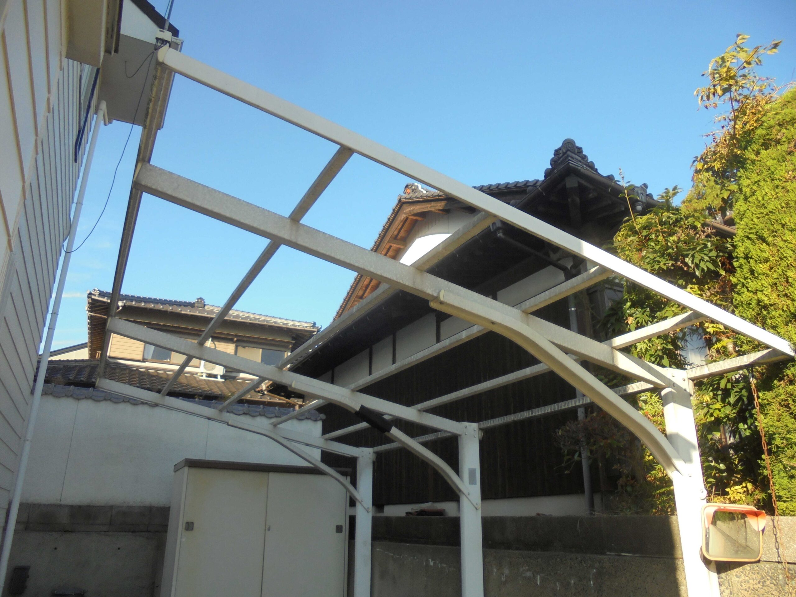 波板屋根があり洗浄できない状態でした。