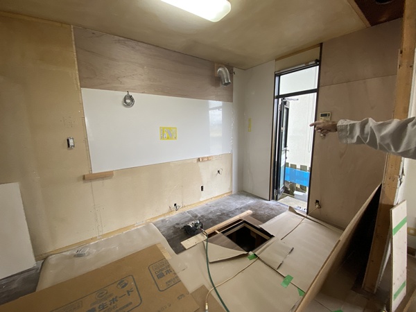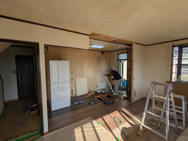 新しいキッチンに合わせてパネルを張り、ダクト・電気配線をしました。
