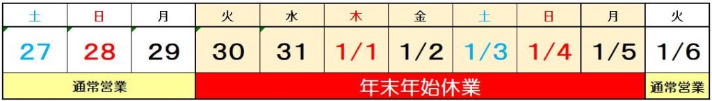 ~年末年始の休業のお知らせ~