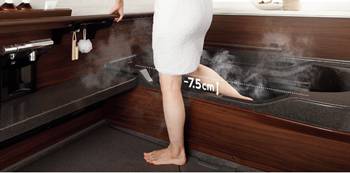 お湯をたっぷり張ると水道代や光熱費が気になる…という方には、ステップ浴槽がオススメです。ステップに足を乗せれば肩までしっかりお湯につかれるので、ステップの分だけ節水になります♪