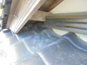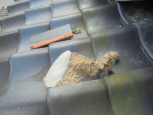 早速壁際の瓦を修理し、屋根裏に入らないように塞ぎました。