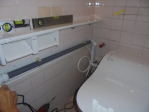 汚水管の位置が壁から離れていたのでリフォーム専用の配管を使用します。