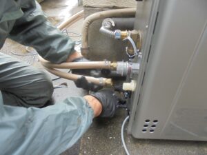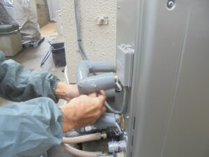 銅管を接続します。ガスバーナーで炙り溶接します。