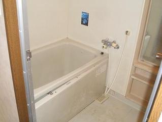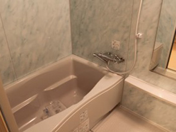 | システムバスルームは古くなっていました。 | 古くなったシステムバスルームを入れ替えました。お風呂に浸かったとき、リラックスできる体勢がとれる形の浴槽です★マンション用バスルーム イナックス リノビオを使用しました。 |