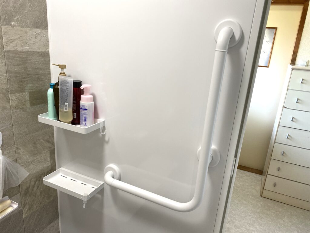 介護認定を受けているご家族の為に、安全に過ごせるように介護保険を使って住宅改修をしました。浴室は昔ながらのタイル張りで入口は段差がありました。最新のシステムバスに替え、段差解消と温かく年中快適な浴室になりました。手摺の位置は、ケアマネージャーさんと打ち合わせてご本人が必要な箇所に取り付けました。