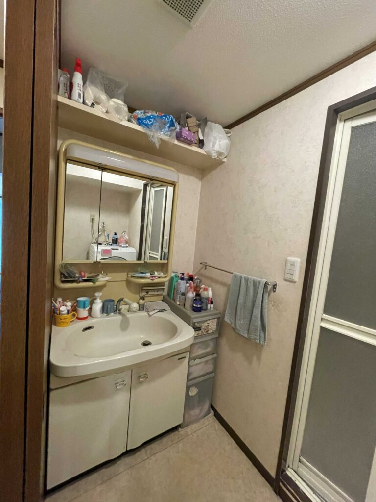 洗面化粧台は、観音開きから片引き出しになり、出し入れがしやすくなりました。収納力も上がり、洗面ボウルも広くなり使いやすくなりました。水栓金具は壁出しなのでお掃除もしやすいです。